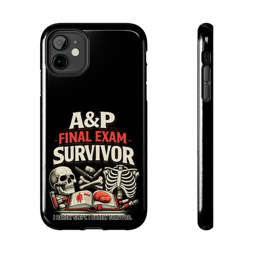 This slim, glossy phone case is made for A&P warriors, anatomy nerds, and science students who pushed through the all-nighters, memorized every muscle, and somehow made it out alive. Featuring the bold “A&P Final Exam Survivor” design—complete with skulls, textbooks, and a battle-worn skeleton—it turns your toughest semester into a badge of honor you can carry everywhere.